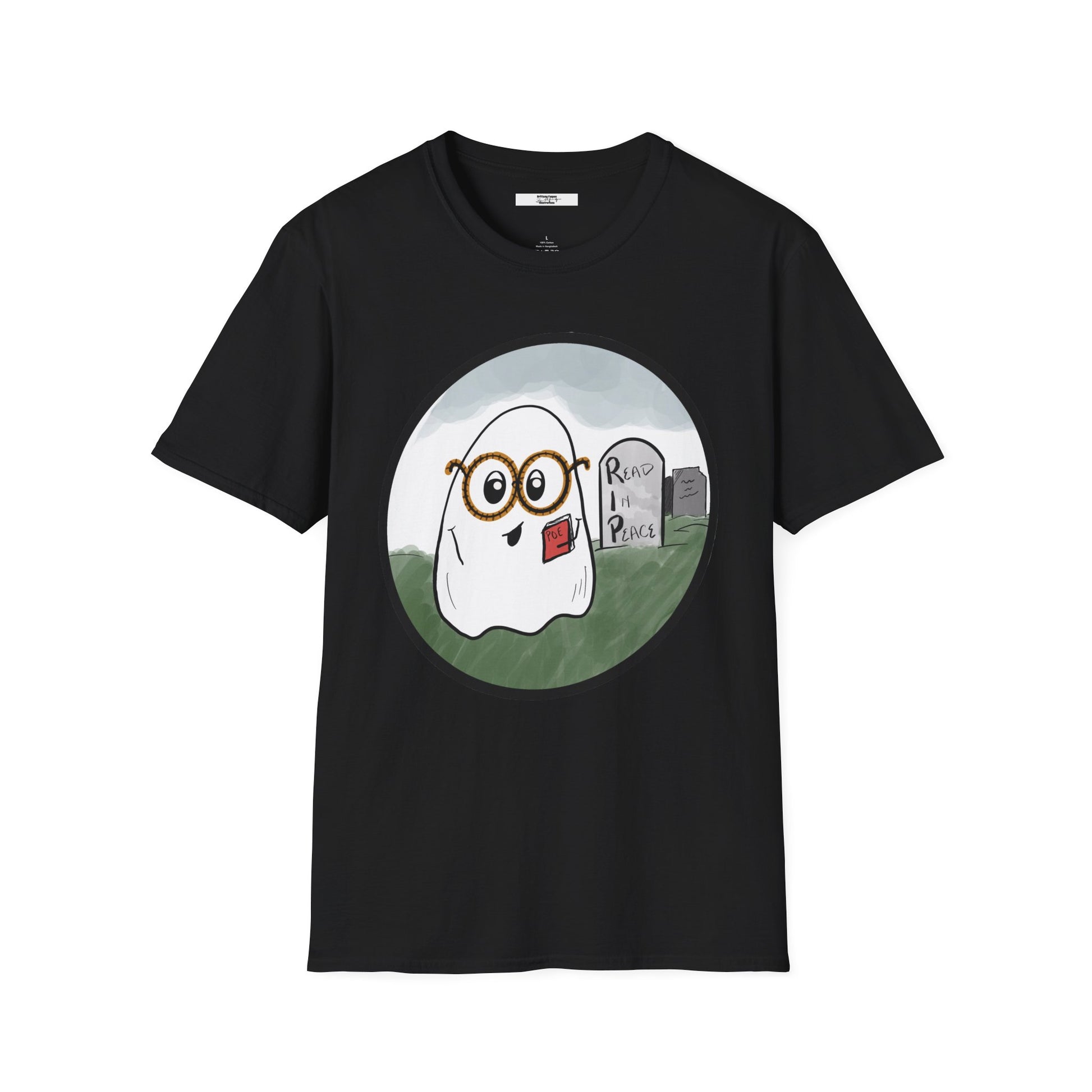 Read in Peace T‑Shirt — Cute Bookish Ghost with 'Read in Peace' Tombstone